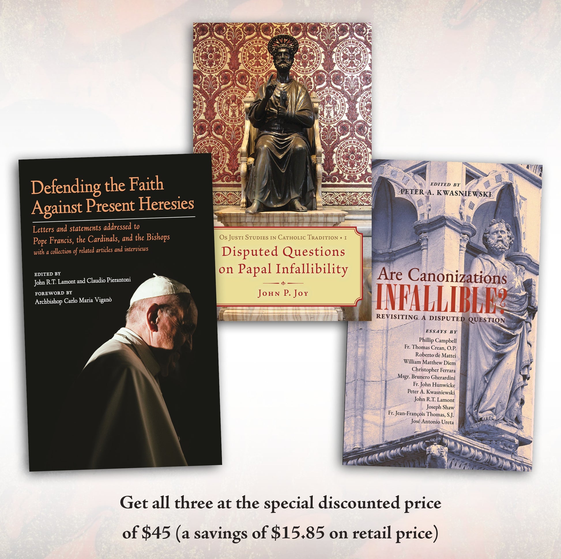 That is where these three fine books come into play. Dr. John Joy expertly explains the Church's teaching on papal infallibility, drawing heavily on Church councils and other magisterial texts, and writing with a calm Thomistic style that sheds light rather than heat. Dr. John Lamont and Dr. Claudio Pierantoni have edited a collection of the best public letters and signed statements made during the Francis pontificate, with a selection of articles written about them: a highly illuminating guide. Finally, Dr. Kwasniewski gathers together distinguished scholars from around the world to debate the question of the infallibility of canonizations, with both sides being given their due.